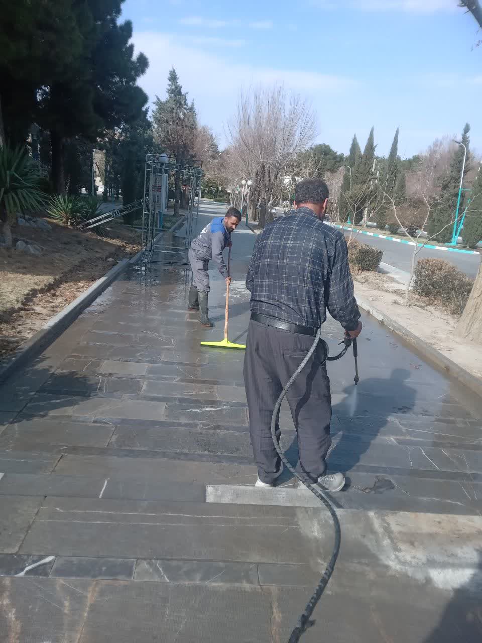 نرم نرمک میرسد اینک بهار ... با ورود به اسفندماه و نزدیک شدن به سال جدید پرسنل واحد خدمات عمومی مدیریت امور پشتیبانی نظافت ساختمانهای ستاد و شستشوی معابرو پیاده روها را با رعایت اصول ایمنی و صرفه جویی در آب با استفاده از آبهای غیر شرب آغاز نمودند.