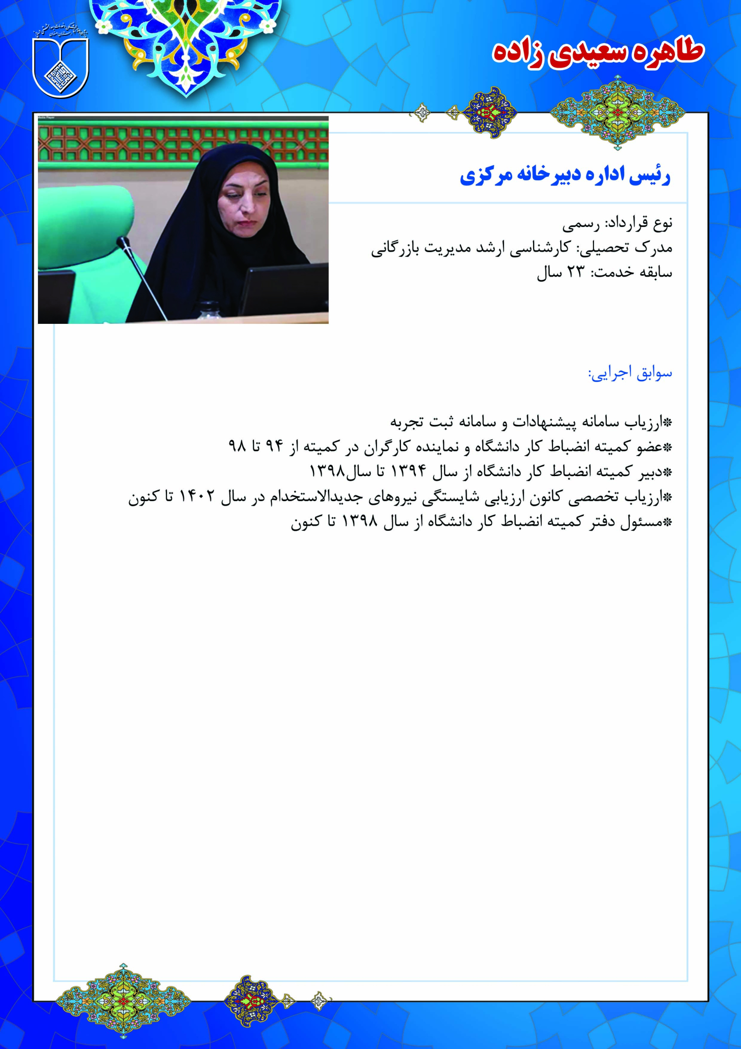 انجام سایر امور محوله در راستای اهداف مدیریت حسب دستور مافوق
